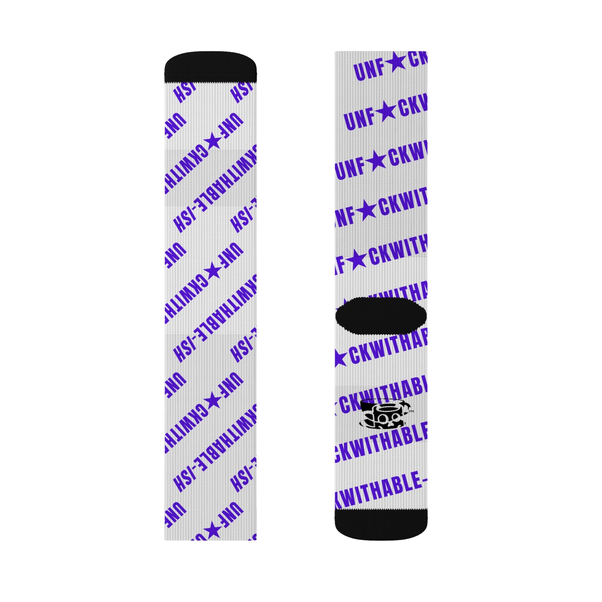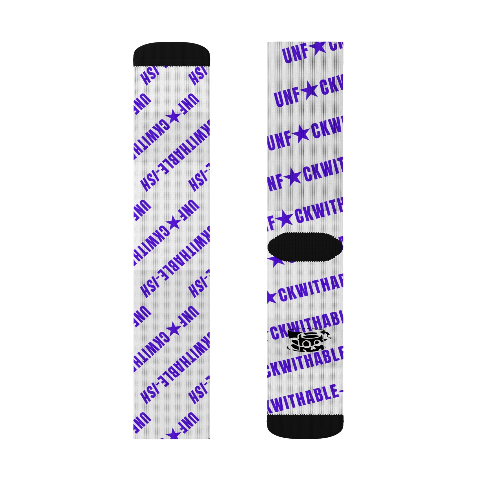 Statement socks for the ones who donโ€™t flinch. These ainโ€™t for subtle vibes or soft lives. With bold purple โ€œUNF*CKWITHABLE-ISHโ€ stamped loud across a white base, these are the daily reminder that youโ€™re built different. Clean lines, sharp color, and cozy as hell โ€” because power should always come in pairs.
