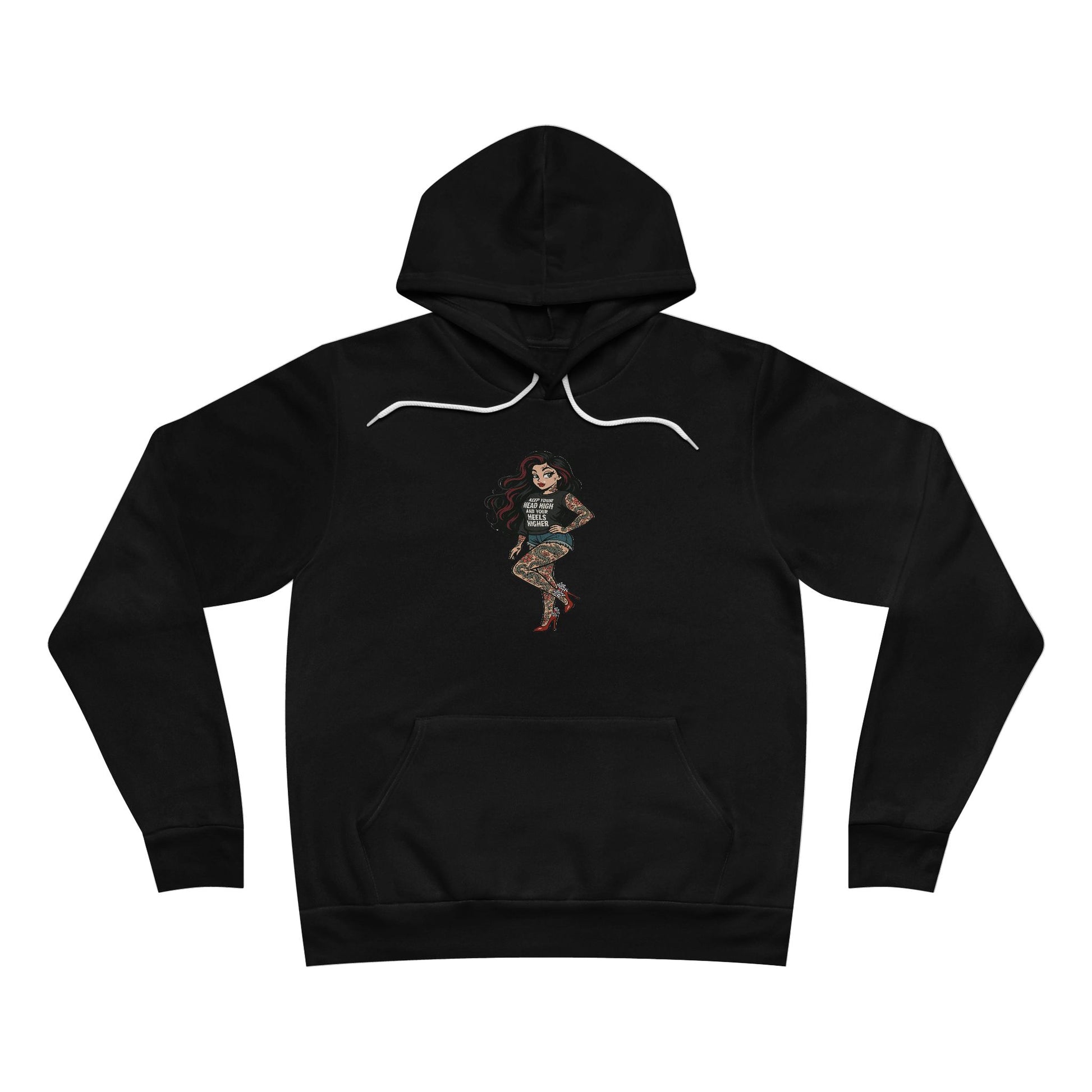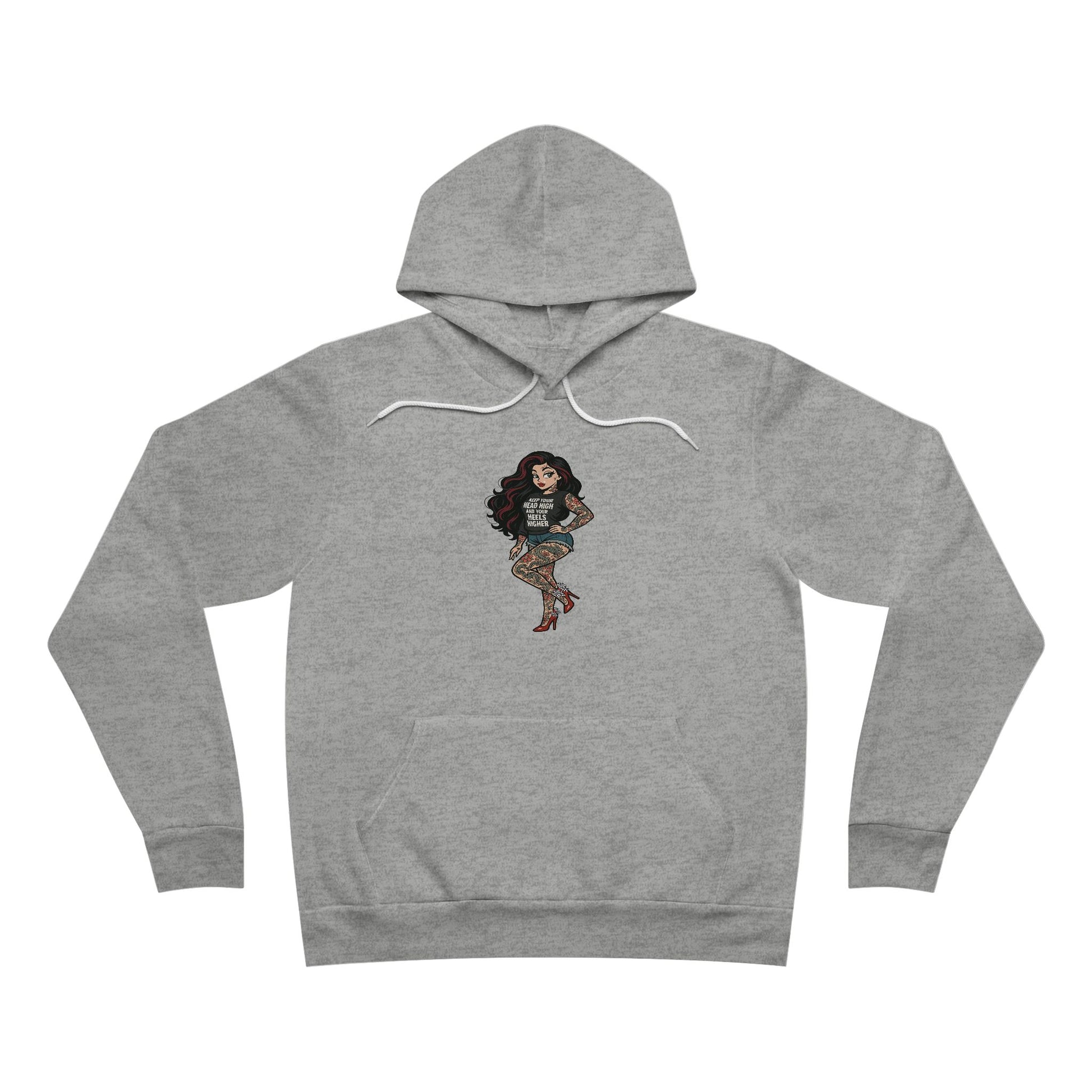 π Unisex Medium-Weight Hoodie β Featuring our exclusive Tattooed Woman in Heels design with her shirt saying: βKeep your head high and your heels higher.β