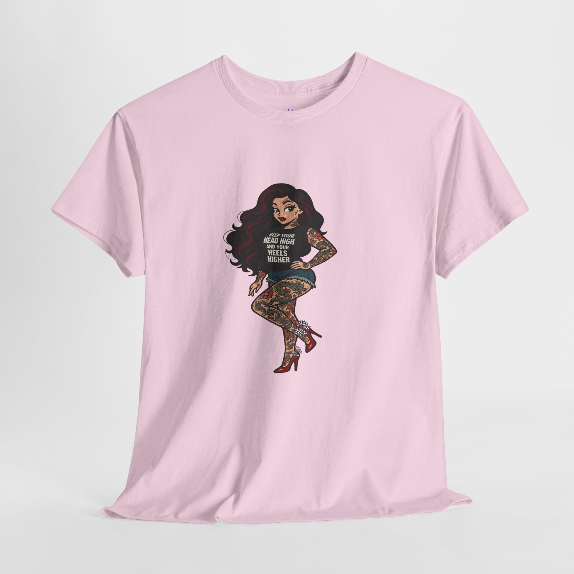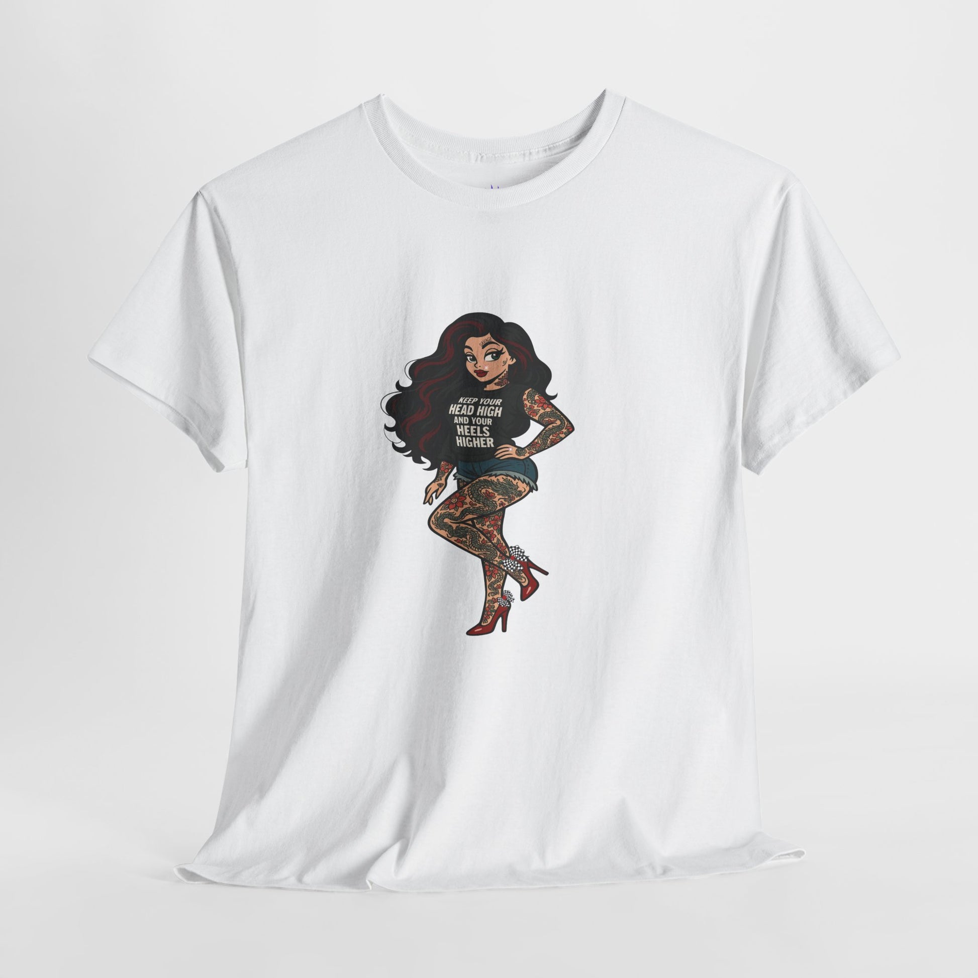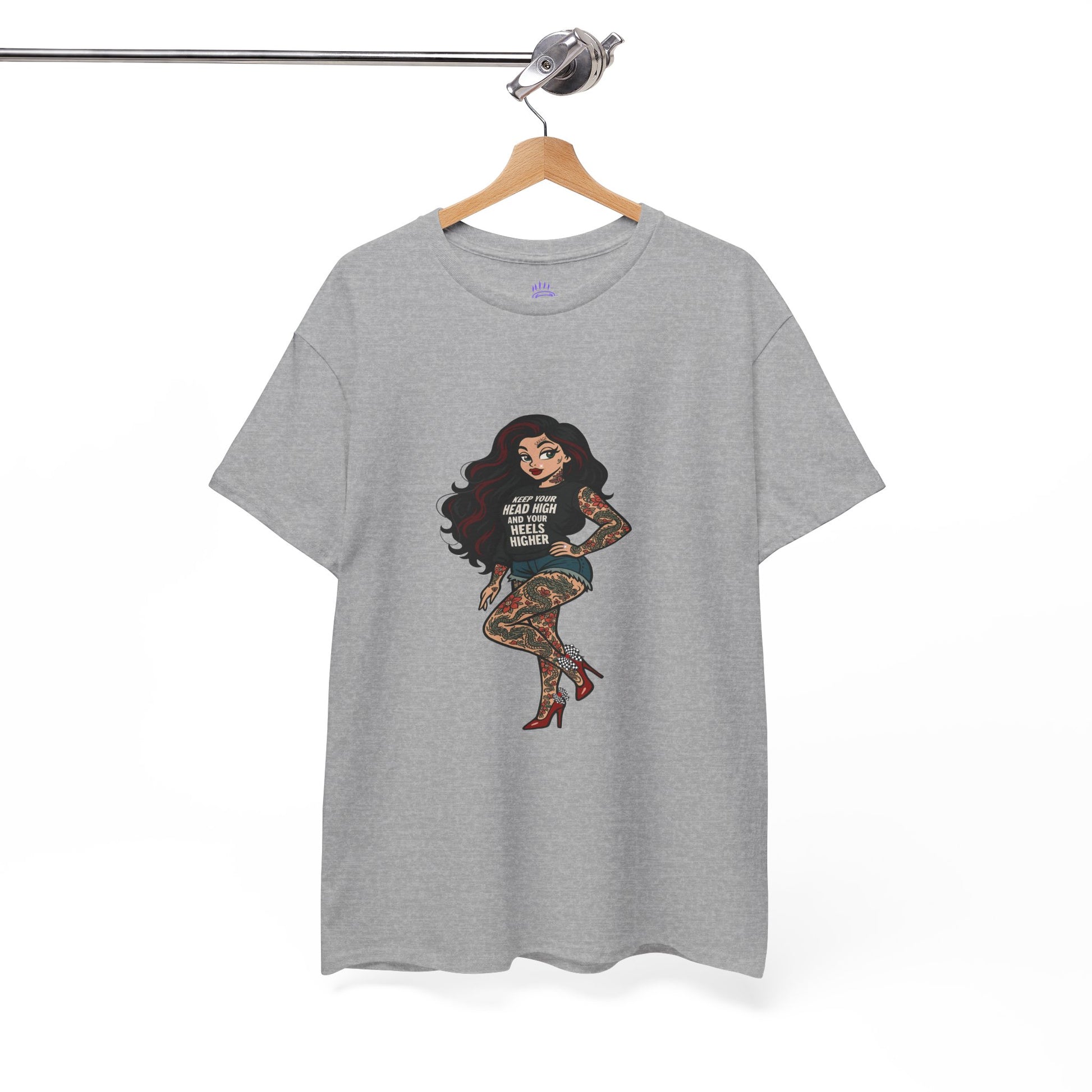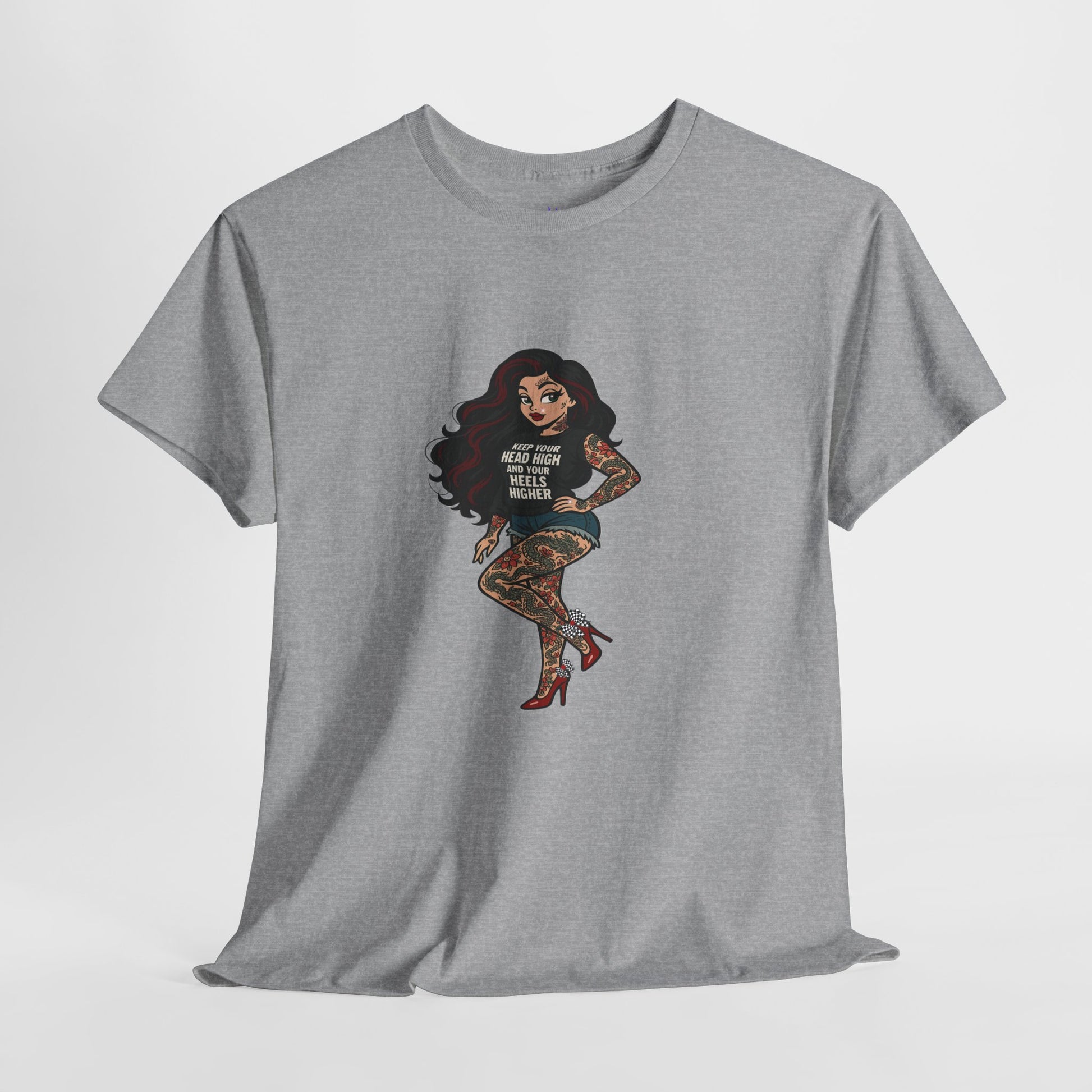 Tats? Check. Heels? Lethal. Energy? Unmatched. This premium unisex cotton tee features a full-body tattooed baddie front and center β€” red heels, ink sleeves, and that β€œwatch me heal” attitude. Soft enough for cozy days, bold enough to shut the whole street down. Available in 15 colors so you can stay loud, proud, and petty in your own damn style.